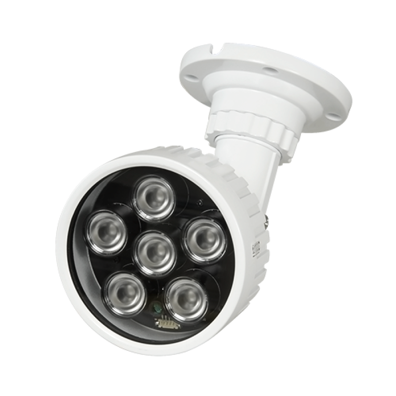 Resistente al agua, con protocolo de impermeabilización IP66, puede ser usado tanto para interior como para exterior. Dispone de una fotocélula para la activación automática de la iluminación infrarroja cuando las condiciones de luminosidad descienden por debajo de un cierto umbral (ON≤10 lux). Por tanto, sus 6 LEDs infrarrojos se activan automáticamente, proporcionando una iluminación infrarroja para la visualización a través de cámaras de videovigilancia. Ángulo de apertura de 60º.