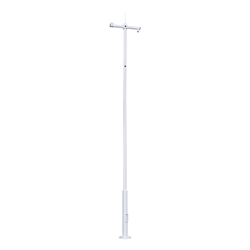 Incluye un poste de base, un poste de instalación, un poste de extensión, un soporte para cámara bullet, un soporte para domo PTZ, un pararrayos y jaula de cimentación