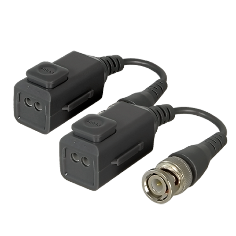 Optimizado para la transmisión de la señal de vídeo de 1 cámara de alta definición analógica HDTVI, HDCVI, AHD o CVBS mediante par trenzado. Dispone de conector BNC macho y terminal de inserción de cable con Splicing Button, conector de dos pines.