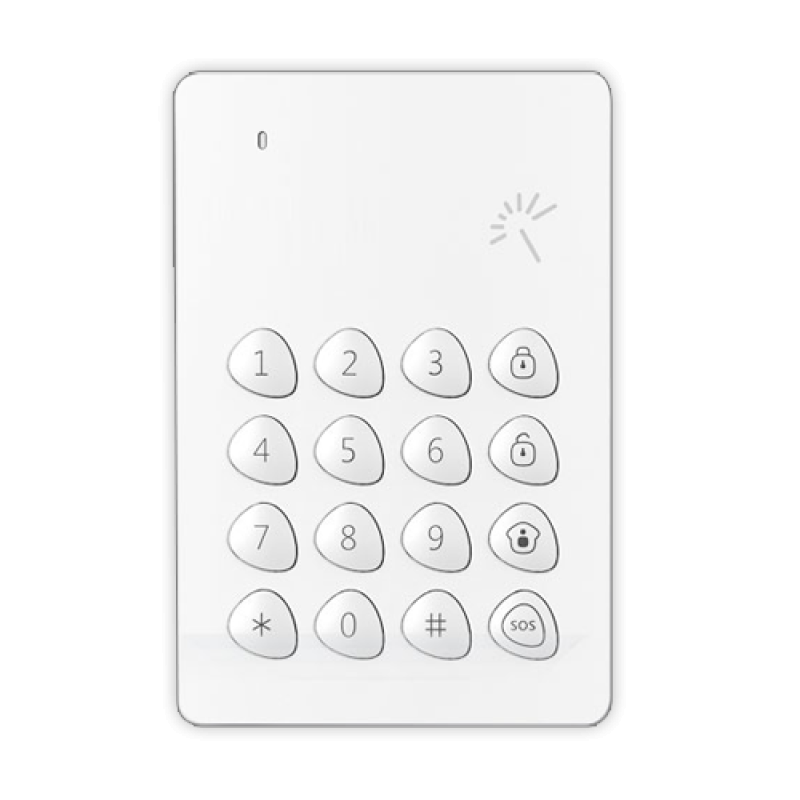 Teclado independiente para armado/desarmado del sistema de alarma. Es compatible con el panel de alarma, se comunica inalámbricamente con éste, y permite armar la alarma a través de su teclado numérico, y desarmarla a través del mismo teclado numérico o a través de llaveros de proximidad.