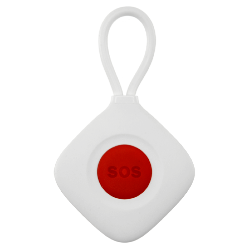 Botón de pánico inalámbrico, que en caso de ser pulsado informa al sistema de alarma, el cual realizará las acciones programadas (informar por sms/llamada, activar sirena, etc).