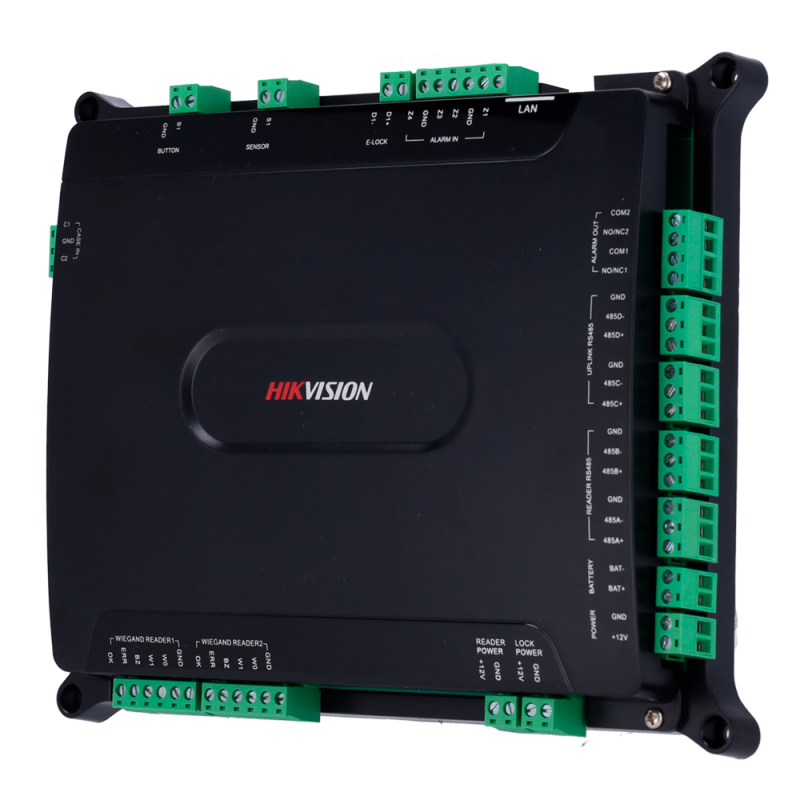 | Entradas | 2 x Wiegand 26/34, 2 x RS485, 1 x sensor de puerta, 1 x botón de apertura, 2 x auxiliar, 4 x entrada de alarma, 1 x tamper |
