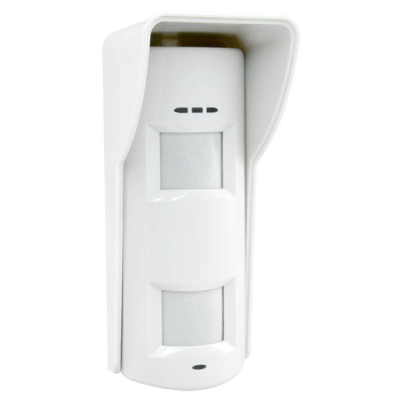 Detector de movimiento cableado, específico para cubrir zonas en exterior. Detección efectiva y segura gracias a su triple tecnología: 2 sensores infrarrojos pasivos duales de bajo ruido y 1 unidad de microondas Doppler que funcionan de forma inteligente y coordinada para evitar las habituales falsas alarmas en exteriores.
