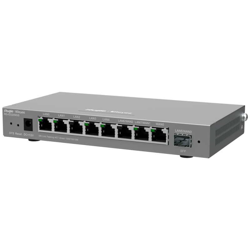 | Interface | 8 puertos LAN 10/100/1000 Mbps , 1 puerto SFP (LAN 7, LAN 6, LAN 5 se puede cambiar a puertos WAN) |