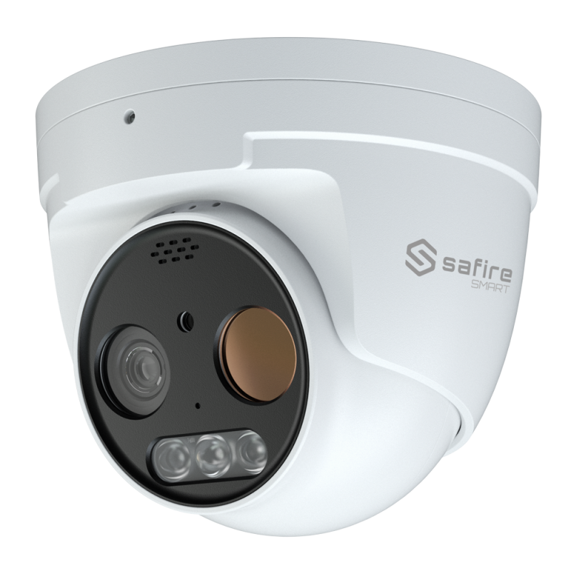 Óptico: Inteligencia Artificial Avanzada: Clasificación de humano, vehículo y vehículo no motorizado sobre: Intrusión en área y Cruce de línea Detección Facial y captura de rostro Conteo de personas, vehículos y vehículos no motorizados Video excepciones (cambio de escena, pérdida de vídeo, ...)AudioMicrófono integrado, 1 entrada / 1 salida nivel de línea 600 ohmCompresión de audioG.711 A/UAlarmas1 entradas / 1 relayAlarma disuasoriaSirena y flash integrados en la cámaraAlmacenamiento internoRanura para tarjeta MicroSD hasta 256 GBInterfaz de redEthernet 10/100M BaseTAcceso remotoNavegador Web, NVR y Software PC Safire Smart CenterInteroperabilidadONVIFAlimentaciónDC 12 V, 0.7 A, 9 W máx. PoE IEEE802.3afTemp. funcionamiento-30º C ~ +60º CGrado de protecciónImpermeable IP66Dimensiones130 (Ø) x 110 (Al) mmPeso680 g