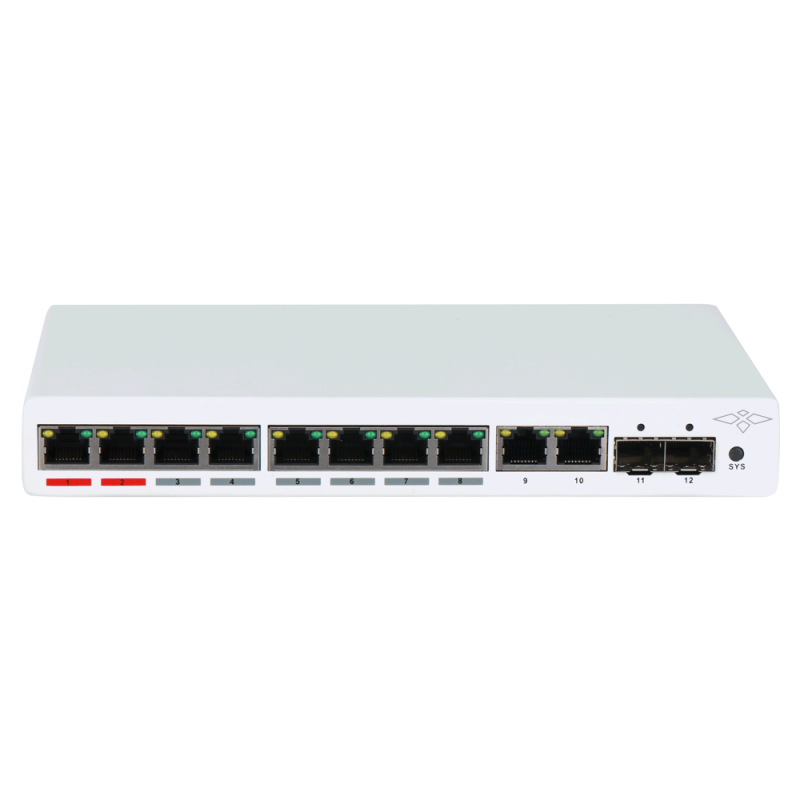 | Interface | 12 puertos RJ45 + 2 Puertos SFP | | Velocidad puertos | 10 x RJ45 10/100/1000Mbps - 2 x SFP 10/100/1000Mbps |